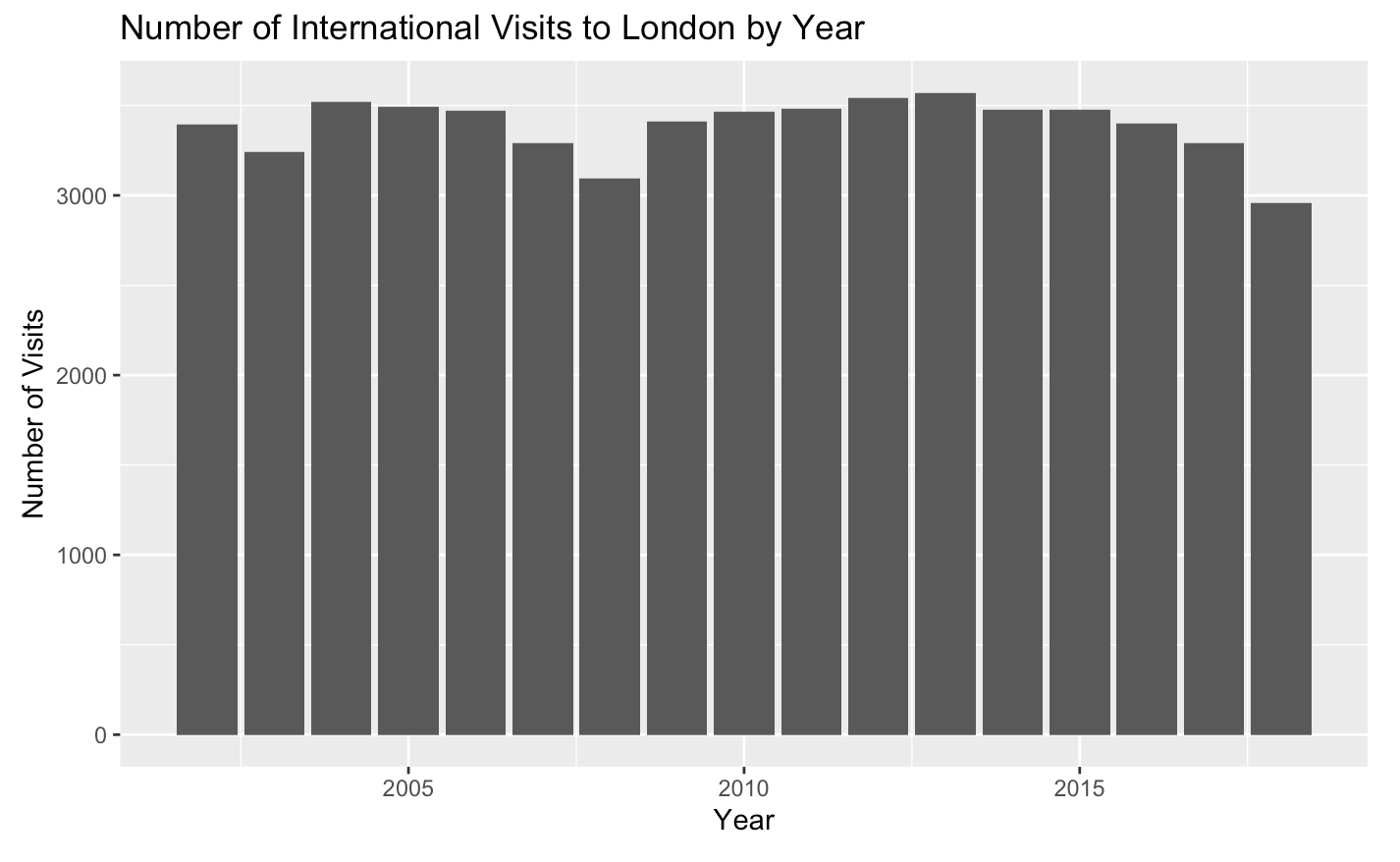 While it is no surprise that holiday is the main reason for travel to London, there are a couple of interesting trends presented in this bar plot.